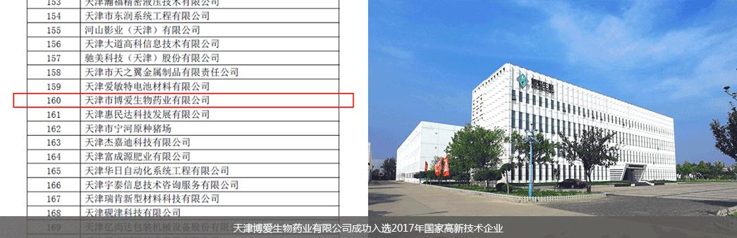 根據(jù)《高新技術(shù)企業(yè)認(rèn)定管理辦法》和《高新技術(shù)企業(yè)認(rèn)定管理工作指引》有關(guān)規(guī)定,全國(guó)高新技術(shù)企業(yè)認(rèn)定管理工作領(lǐng)導(dǎo)小組辦公室已于12月26日對(duì)關(guān)于2017年國(guó)家高新技術(shù)企業(yè)進(jìn)行了復(fù)函確認(rèn)。其中天津市博愛(ài)生物藥業(yè)有限公司榜上有名,憑借紫杉醇植物細(xì)胞培養(yǎng)技術(shù)被認(rèn)定為高新技術(shù)企業(yè),不日將頒發(fā)高新技術(shù)企業(yè)證書(shū)。