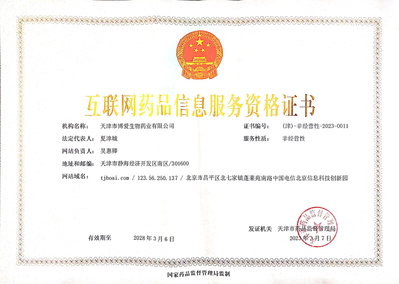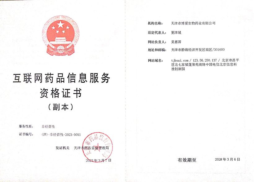 博愛生物藥業(yè)-互聯(lián)網(wǎng)藥品信息服務(wù)資格證書